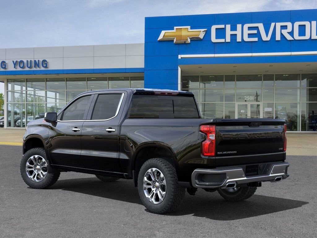 Our 2025 Chevrolet Silverado 1500 LTZ Crew Cab 4X4 with the Premium Package is built with bold strength backed by a commanding Black design! Powered by a 6.2 Liter V8 supplying 420hp to a 10 Speed Automatic transmission tuned for tough challenges. A high-capacity suspension helps you tow and haul heavy loads, and this Four Wheel Drive truck scores nearly 20mpg on the highway. Owners can feel pride inside when they look at our Silverado, which is well-equipped with LED fog lamps, a power up/down tailgate, perimeter lighting, a spray-on bedliner, 20-inch alloy wheels, a trailer hitch, a handy 120V outlet, and our Premium Pack for a power sunroof.