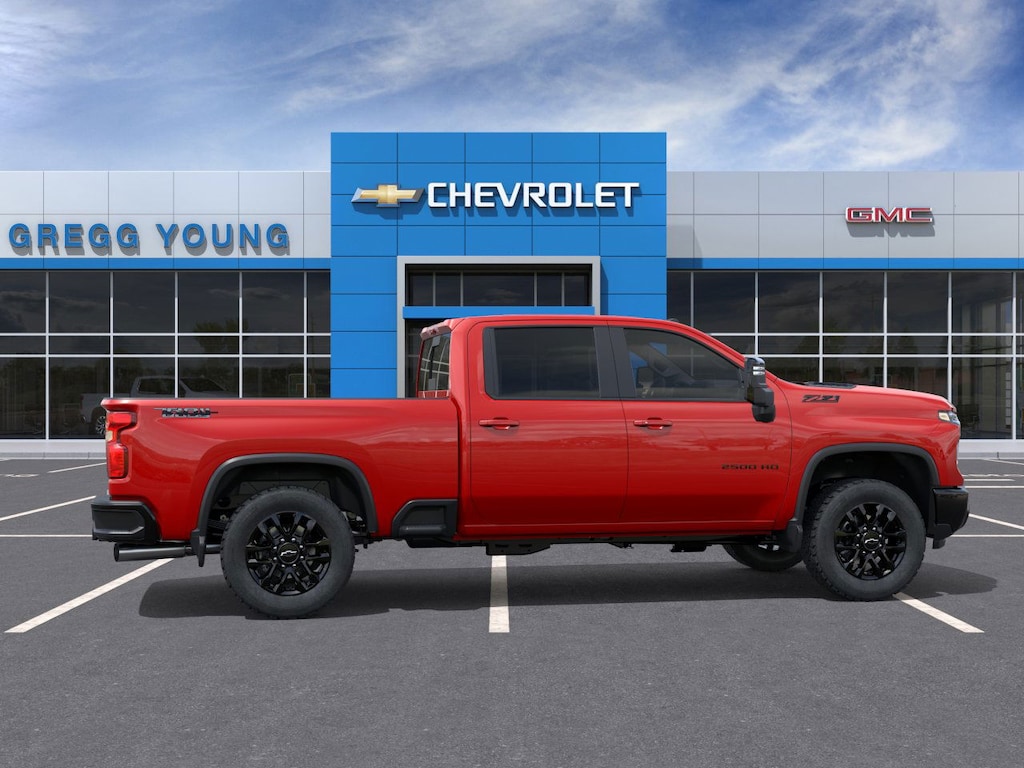Rough, ready, and Diesel powered, our 2026 Chevrolet Silverado 2500 LT Crew Cab 4X4 rides with terrific truck appeal in Red Hot! Motivated by a TurboCharged 6.6 Liter DuraMax Diesel V8 offering 470hp and 975lb-ft of torque to a 10 Speed Allison Automatic transmission for muscular towing and hauling capabilities. An HD suspension and auto-locking rear differential help you handle hard work without breaking a sweat, and this Four Wheel Drive truck stands strong with an impressive range of standard features. Highlights include chrome bumpers, alloy wheels, power trailering mirrors, an EZ lift and lower tailgate, LED taillamps, side/rear bed steps, a trailer hitch, and cargo-bed lighting.