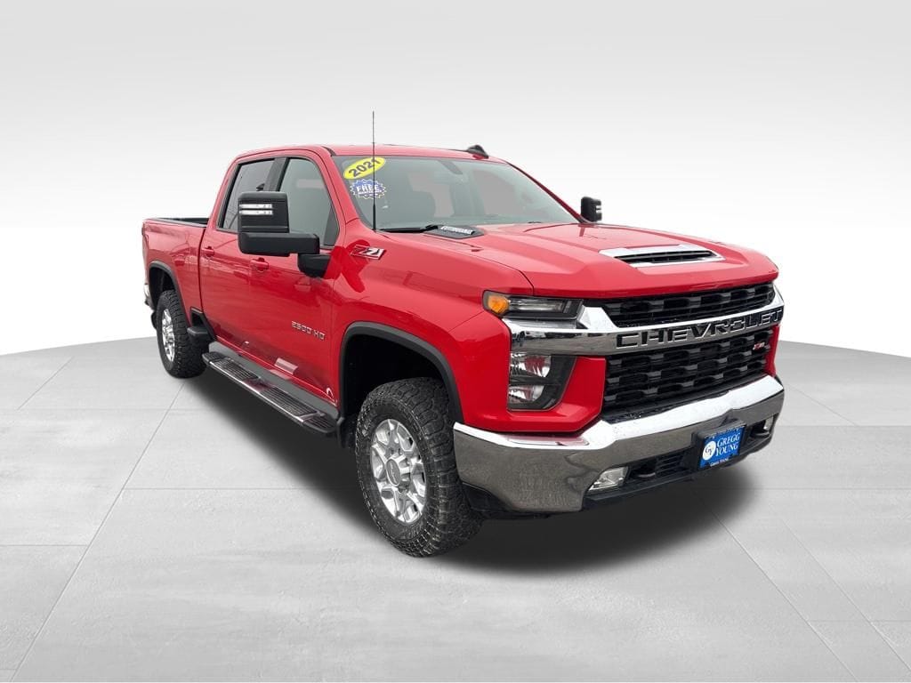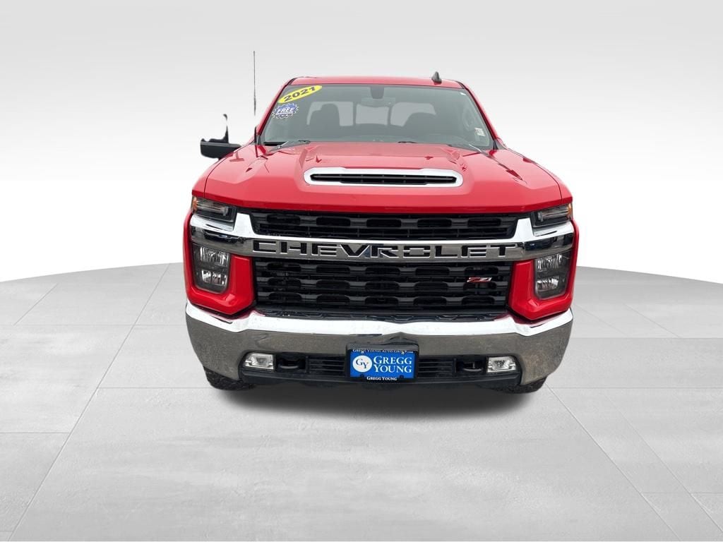 Our Diesel powered Accident Free, One Owner 2021 Chevrolet Silverado 2500 LT Crew Cab 4X4 with the Convenience Package gets more done with more comfort in Red Hot! Motivated by a TurboCharged 6.6 Liter DuraMax V8 providing 445hp and 910lb-ft of torque connected to a 10 Speed Allison Automatic transmission. This Four Wheel Drive truck adds capable handling for extra on-the-job confidence, and it compels your attention with a bold design. A technical-looking Chevrolet grille sets the tone along with alloy wheels, chrome bumpers, and our package's LED fog lamps and cargo-bed lighting.