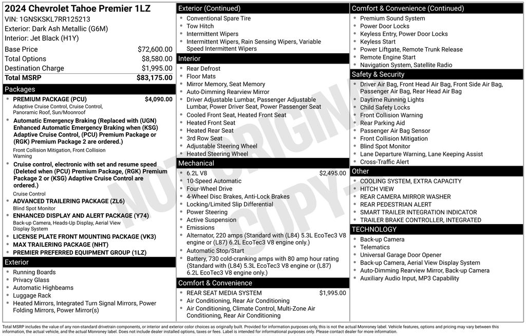 Must-have Chevrolet safety systems are included in our Premium Pack, adding adaptive cruise control, enhanced automatic braking, a rear pedestrian alert, a head-up display, a digital rearview mirror, trailer blind-spot monitoring, HD surround vision, and more. Designed to dominate, our Tahoe Premier delivers the goods! Save this Page and Call for Availability. We Know You Will Enjoy Your Test Drive Towards Ownership!