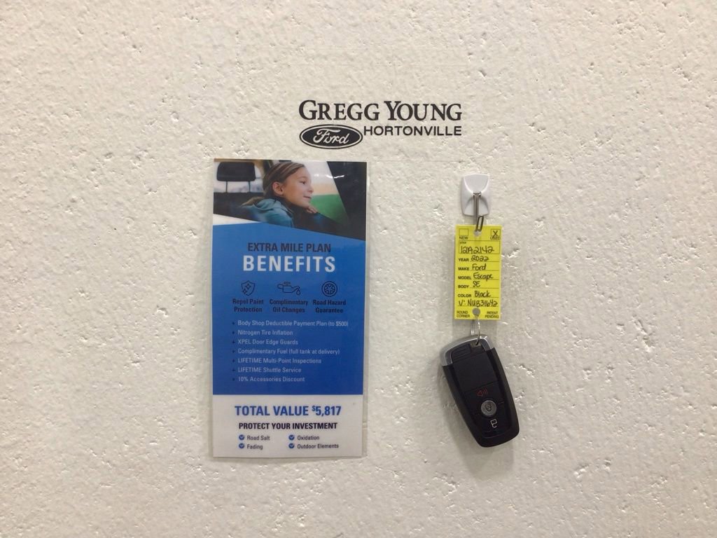 **One Owner**Accident Free**2022**Ford**Escape**SE**AWD**Cloth Seats**Android Auto**Apple CarPlay**Our One Owner, Accident Free 2022 Ford Escape SE AWD is ready to leave a lasting impression with its lean and sporty Agate Black Metallic design! Motivated by a TurboCharged 1.5 Liter EcoBoost 3 Cylinder offering 181hp paired to an 8 Speed Automatic transmission for passionate adventures. This All Wheel Drive SUV also achieves nearly 31mpg on the highway with a fierce and functional exterior. Just check out Escape details like a black-mesh grille, molded-in skid plates, alloy wheels, dual chrome-tipped exhaust outlets, and bold black lower-body cladding.It's a refined yet rugged look that works incredibly well with our athletic SE cabin. Here you'll enjoy comfortable cloth seats, a folding second row, a multifunction steering wheel, single-zone climate control, cruise control, and Intelligent Access with pushbutton ignition. Pursue your dreams but stay connected with a SYNC 3 infotainment system, an 8-inch touchscreen, voice recognition, Android Auto/Apple CarPlay, FordPass Connect WiFi compatibility, Bluetooth, and a six-speaker sound system.Intelligent Ford features for your safety include Co-Pilot360 technologies such as a backup camera, automatic braking, a blind-spot monitor, lane-keeping assistance, forward collision warning, and rear cross-traffic alert. With all that and more, our Escape SE welcomes whatever the day may bring! Save this Page and Call for Availability. We Know You Will Enjoy Your Test Drive Towards Ownership!