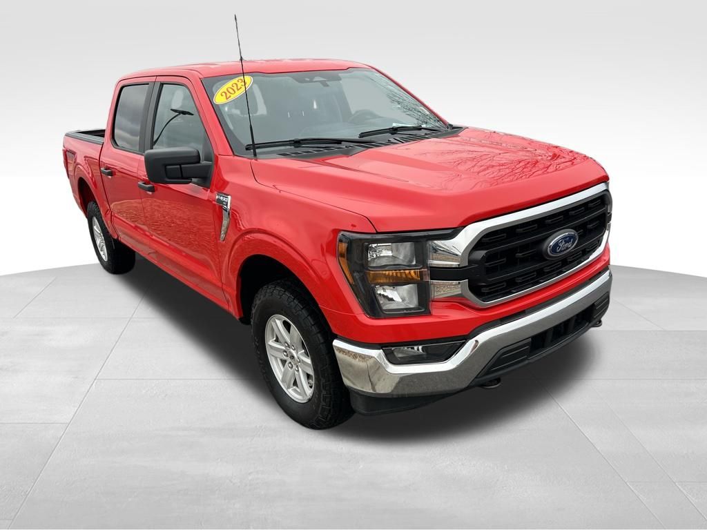 Big and bold in Race Red, our 2023 Ford F-150 XLT SuperCrew 4X4 is ready to work hard for you! Powered by a Twin-TurboCharged 3.5 Liter EcoBoost V6 serving up 400hp connected to a 10 Speed Automatic transmission so you can get more done with less effort. This Four Wheel Drive truck is also easy to maneuver at work or play, and it sees nearly 23mpg on the highway. Rugged good looks are standard with our F-150, which showcases halogen headlamps, fog lamps, chrome bumpers, alloy wheels, a bedliner, and heated power mirrors.