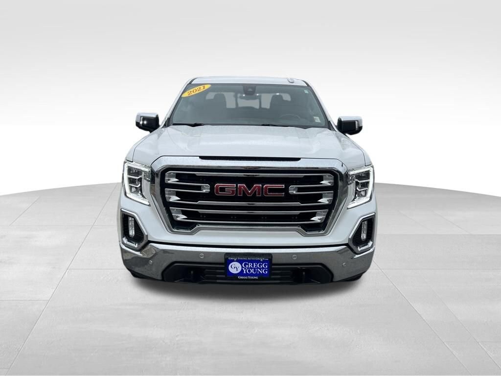**One Owner**Accident Free**2021**GMC**Sierra 1500**SLT**4WD**Premium Plus Pack**Heated & Ventilated Front Seats**Heated Rear Seats**Navigation**Powered by innovation, our One Owner, Accident Free 2021 GMC Sierra 1500 SLT Crew Cab 4X4 with the Premium Plus Pack delivers what you demand in a truck backed by a bold White Frost Tricoat design! Motivated by a 5.3 Liter EcoTec3 V8 offering 355hp to an 8 Speed Automatic transmission so you can tow, haul, and travel with ease. This Four Wheel Drive truck also rewards you with confident handling and can see nearly 20mpg on the highway. Chrome accents and bumpers bring out the stylish side of our Sierra enhanced by LED lighting, fog lamps, a ProGrade Trailering System, a MultiPro tailgate, running boards, tonneau cover, and our package's assist steps, 20-inch alloy wheels, and a spray-on bed liner.Our SLT cabin is a comfortable command post with our package's heated/ventilated power front and heated rear seats, full-color navigation, wireless charging, and Bose audio, all complemented by a heated leather steering wheel, dual-zone automatic climate control, keyless open/ignition, 12V/120V power outlets, an 8-inch touchscreen, wireless Android Auto/Apple CarPlay, WiFi compatibility, and Bluetooth.GMC lets you drive with extra confidence knowing you're protected by an HD backup camera plus our package's emergency braking, adaptive cruise control, blind-spot monitoring, parking sensors, lane-keeping assistance, and more. Achieve more every day in our precisely engineered Sierra 1500 SLT! Save this Page and Call for Availability. We Know You Will Enjoy Your Gregg Young Chevrolet Omaha Test Drive Towards Ownership! We offer PRE-APPROVAL programs so call (402) 572-8080 to get started today! At Gregg Young Chevrolet... We'll Go The Extra Mile For You. We have an app for that! Download the Gregg Young Chevrolet application directly to your iPhone or Android.